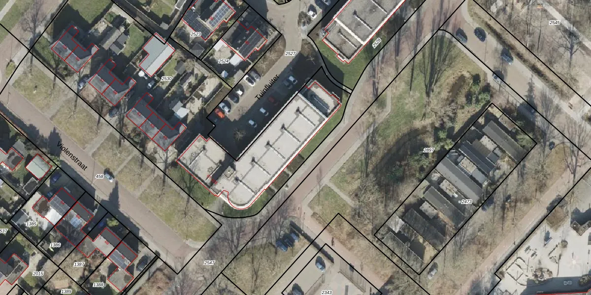 Het perceel waarop Violenstraat 73 staat heeft een oppervlakte van 3409 m². Dit is een zeer groot perceel. De perceeloppervlakte wordt geregistreerd door het Kadaster. Gedetailleerde informatie over de maten van dit perceel kunt u vinden in het rapport Kadastrale kaart met maatvoering van Violenstraat 73.