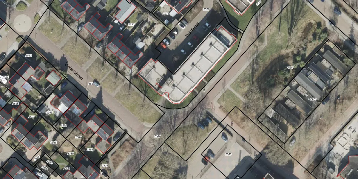 Het perceel waarop Violenstraat 83 staat heeft een oppervlakte van 3409 m². Dit is een zeer groot perceel. De perceeloppervlakte wordt geregistreerd door het Kadaster. Gedetailleerde informatie over de maten van dit perceel kunt u vinden in het rapport Kadastrale kaart met maatvoering van Violenstraat 83.