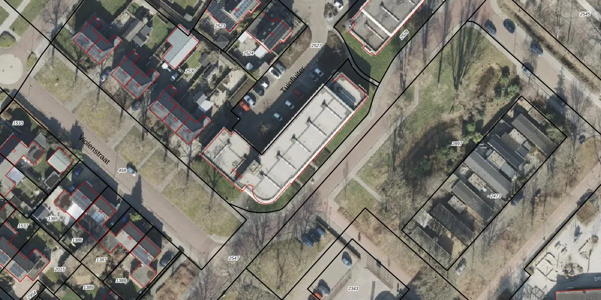 Het perceel waarop Violenstraat 87 staat heeft een oppervlakte van 3409 m². Dit is een zeer groot perceel. De perceeloppervlakte wordt geregistreerd door het Kadaster. Gedetailleerde informatie over de maten van dit perceel kunt u vinden in het rapport Kadastrale kaart met maatvoering van Violenstraat 87.