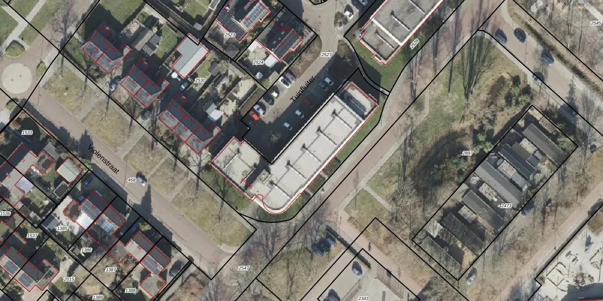 Het perceel waarop Violenstraat 99 staat heeft een oppervlakte van 3409 m². Dit is een zeer groot perceel. De perceeloppervlakte wordt geregistreerd door het Kadaster. Gedetailleerde informatie over de maten van dit perceel kunt u vinden in het rapport Kadastrale kaart met maatvoering van Violenstraat 99.