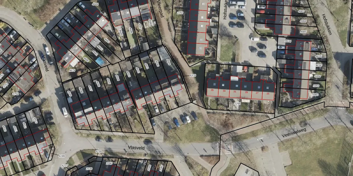 Gebruik de zoekbalk of klik op een perceel voor informatie over de adressen binnen dit perceel.