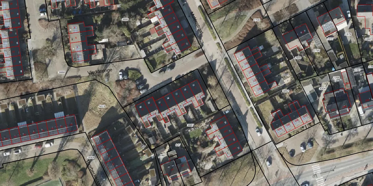 Het perceel waarop Vledderinge 3 staat heeft een oppervlakte van 2010 m². Dit is een zeer groot perceel. De perceeloppervlakte wordt geregistreerd door het Kadaster. Gedetailleerde informatie over de maten van dit perceel kunt u vinden in het rapport Kadastrale kaart met maatvoering van Vledderinge 3.