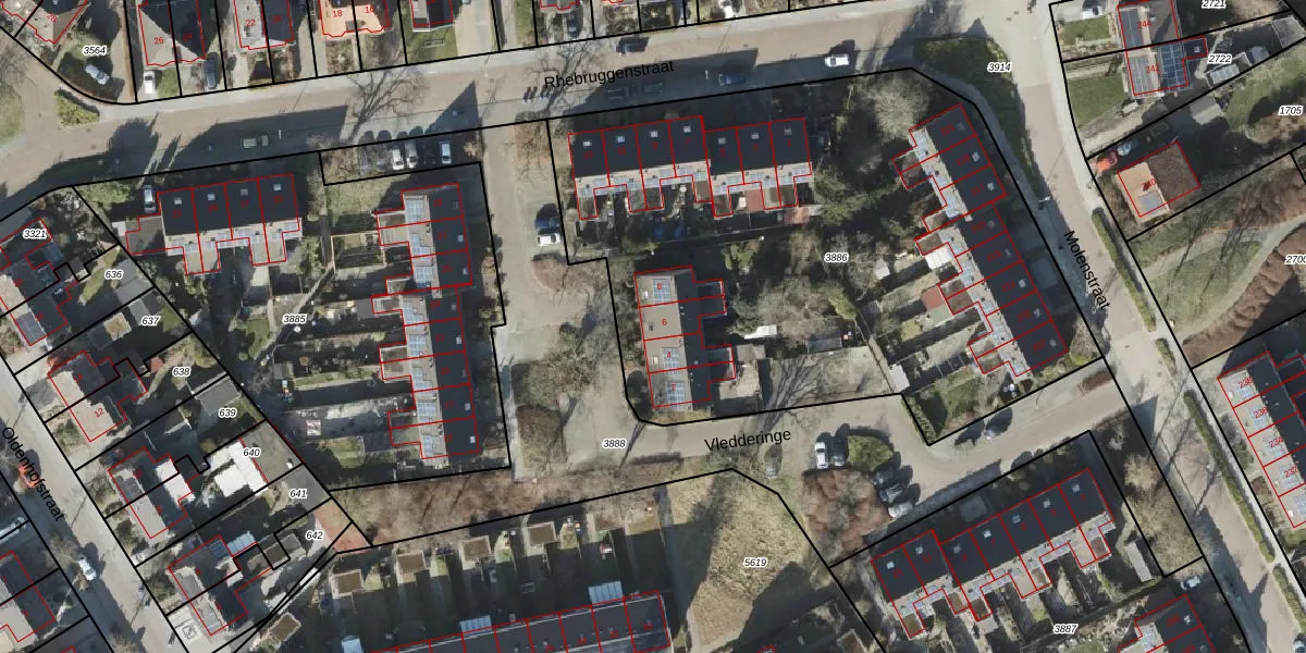 Het perceel waarop Vledderinge 6 staat heeft een oppervlakte van 3435 m². Dit is een zeer groot perceel. De perceeloppervlakte wordt geregistreerd door het Kadaster. Gedetailleerde informatie over de maten van dit perceel kunt u vinden in het rapport Kadastrale kaart met maatvoering van Vledderinge 6.
