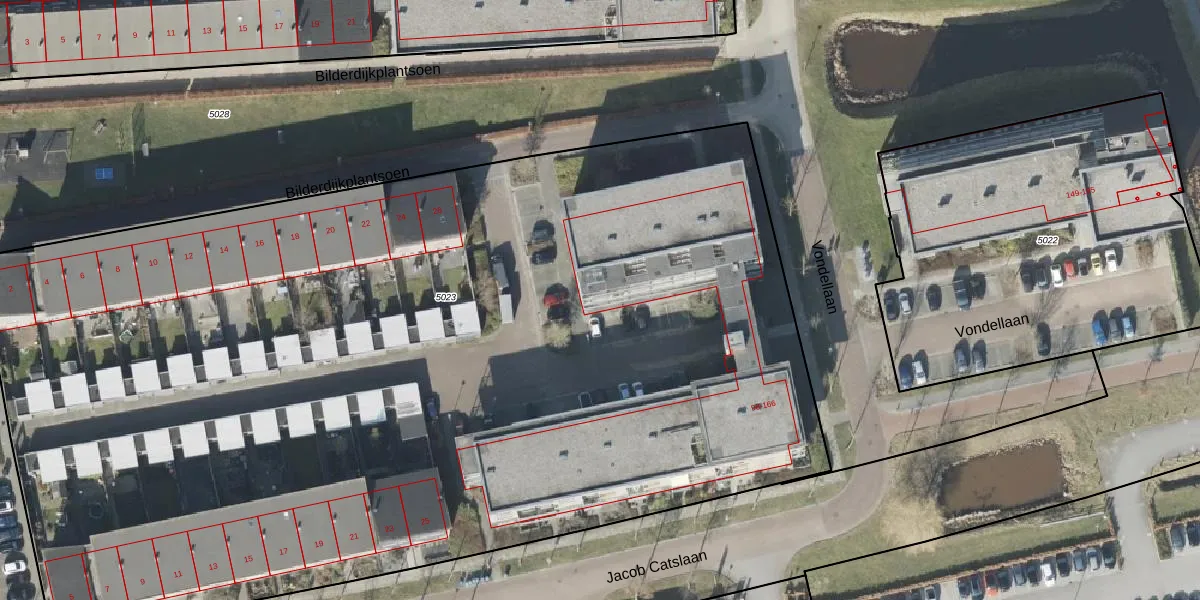 Het perceel waarop Vondellaan 104 staat heeft een oppervlakte van 8335 m². Dit is een zeer groot perceel. De perceeloppervlakte wordt geregistreerd door het Kadaster. Gedetailleerde informatie over de maten van dit perceel kunt u vinden in het rapport Kadastrale kaart met maatvoering van Vondellaan 104.