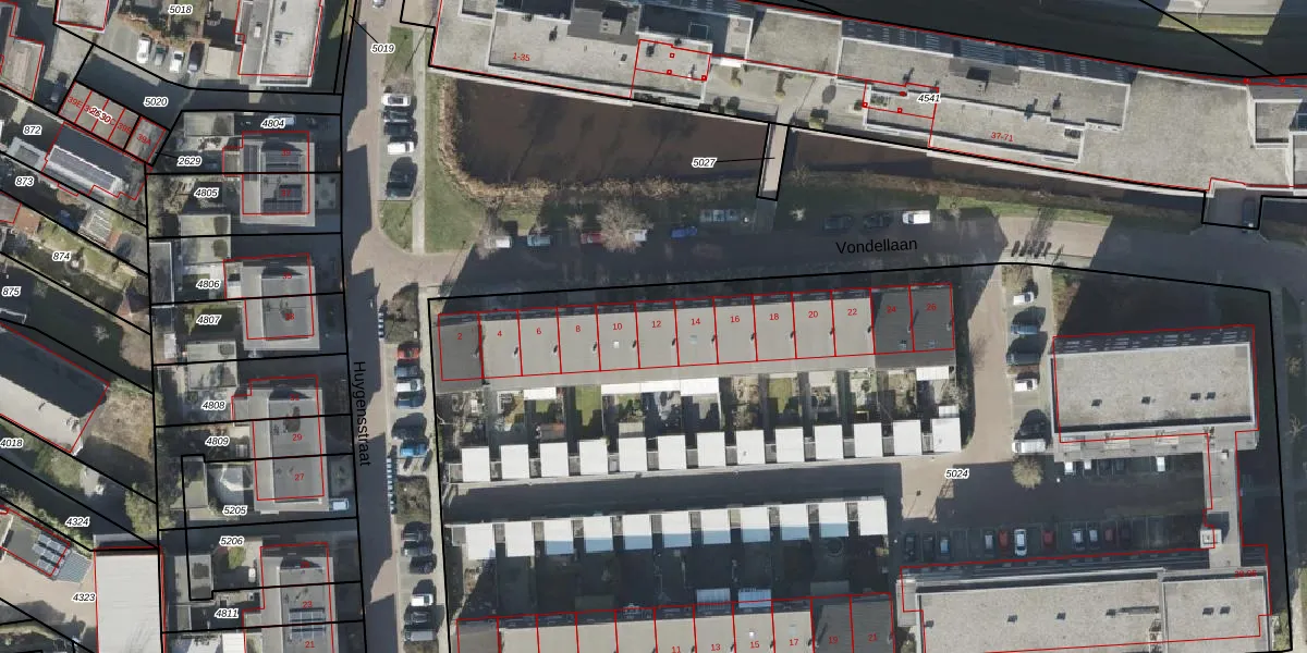 Vondellaan 12 is gelegen op kadastraal perceel ASN00T5024. Deze kadastrale aanduiding is uniek en wordt gebruikt door het Kadaster om eigendomsrechten en andere zakelijke rechten vast te leggen. Het perceel maakt onderdeel uit van de kadastrale gemeente Assen.