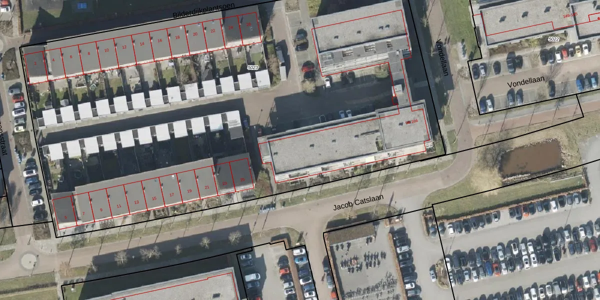 Het perceel waarop Vondellaan 146 staat heeft een oppervlakte van 8335 m². Dit is een zeer groot perceel. De perceeloppervlakte wordt geregistreerd door het Kadaster. Gedetailleerde informatie over de maten van dit perceel kunt u vinden in het rapport Kadastrale kaart met maatvoering van Vondellaan 146.