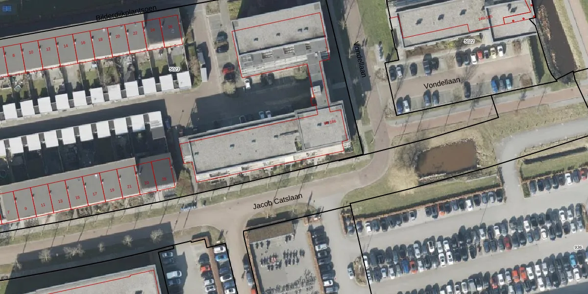 Het perceel waarop Vondellaan 154 staat heeft een oppervlakte van 8335 m². Dit is een zeer groot perceel. De perceeloppervlakte wordt geregistreerd door het Kadaster. Gedetailleerde informatie over de maten van dit perceel kunt u vinden in het rapport Kadastrale kaart met maatvoering van Vondellaan 154.