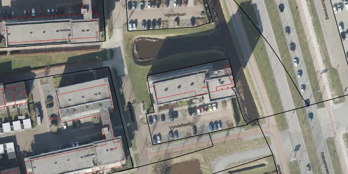Het perceel waarop Vondellaan 173 staat heeft een oppervlakte van 2015 m². Dit is een zeer groot perceel. De perceeloppervlakte wordt geregistreerd door het Kadaster. Gedetailleerde informatie over de maten van dit perceel kunt u vinden in het rapport Kadastrale kaart met maatvoering van Vondellaan 173.