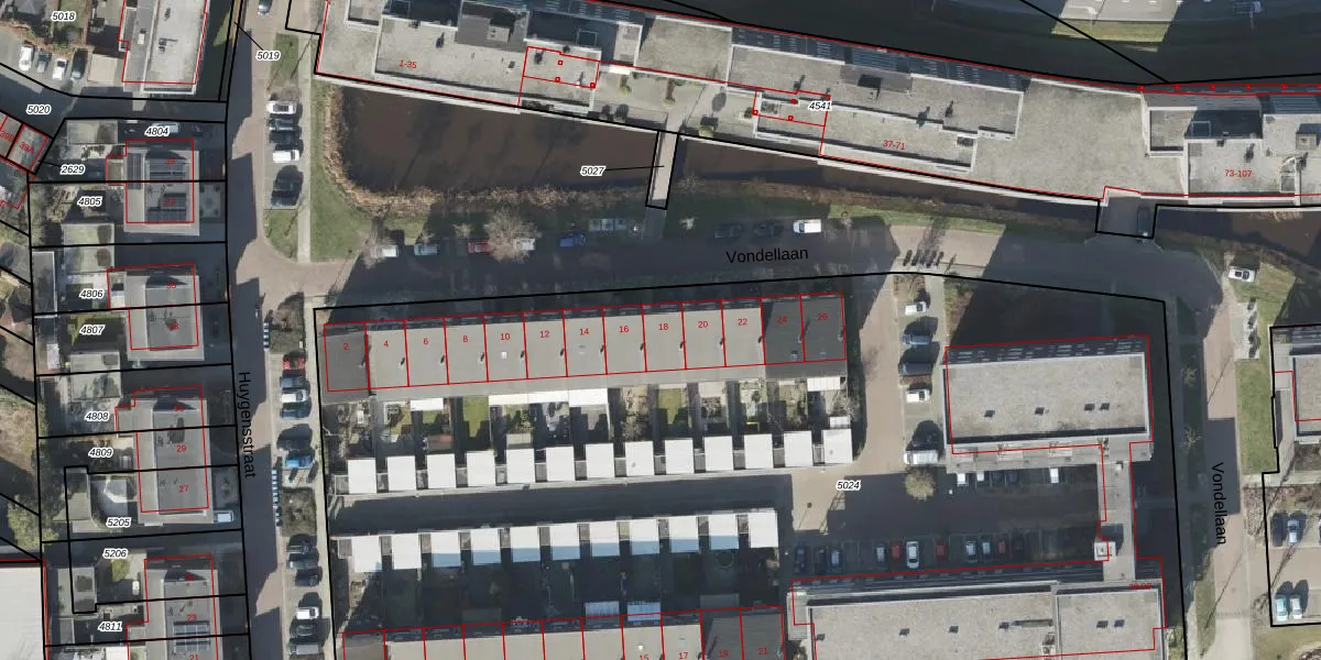 Vondellaan 18 is gelegen op kadastraal perceel ASN00T5024. Deze kadastrale aanduiding is uniek en wordt gebruikt door het Kadaster om eigendomsrechten en andere zakelijke rechten vast te leggen. Het perceel maakt onderdeel uit van de kadastrale gemeente Assen.