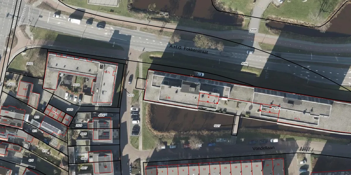 Het perceel waarop Vondellaan 19 staat heeft een oppervlakte van 3140 m². Dit is een zeer groot perceel. De perceeloppervlakte wordt geregistreerd door het Kadaster. Gedetailleerde informatie over de maten van dit perceel kunt u vinden in het rapport Kadastrale kaart met maatvoering van Vondellaan 19.