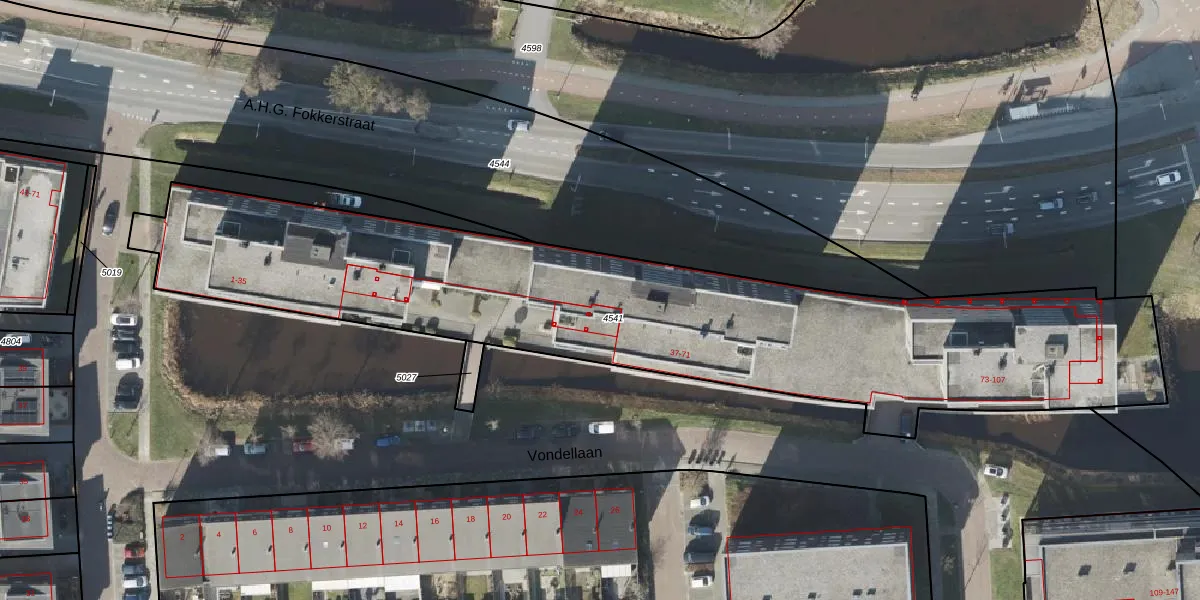 Vondellaan 55 is gelegen op kadastraal perceel ASN00T4541. Deze kadastrale aanduiding is uniek en wordt gebruikt door het Kadaster om eigendomsrechten en andere zakelijke rechten vast te leggen. Het perceel maakt onderdeel uit van de kadastrale gemeente Assen.