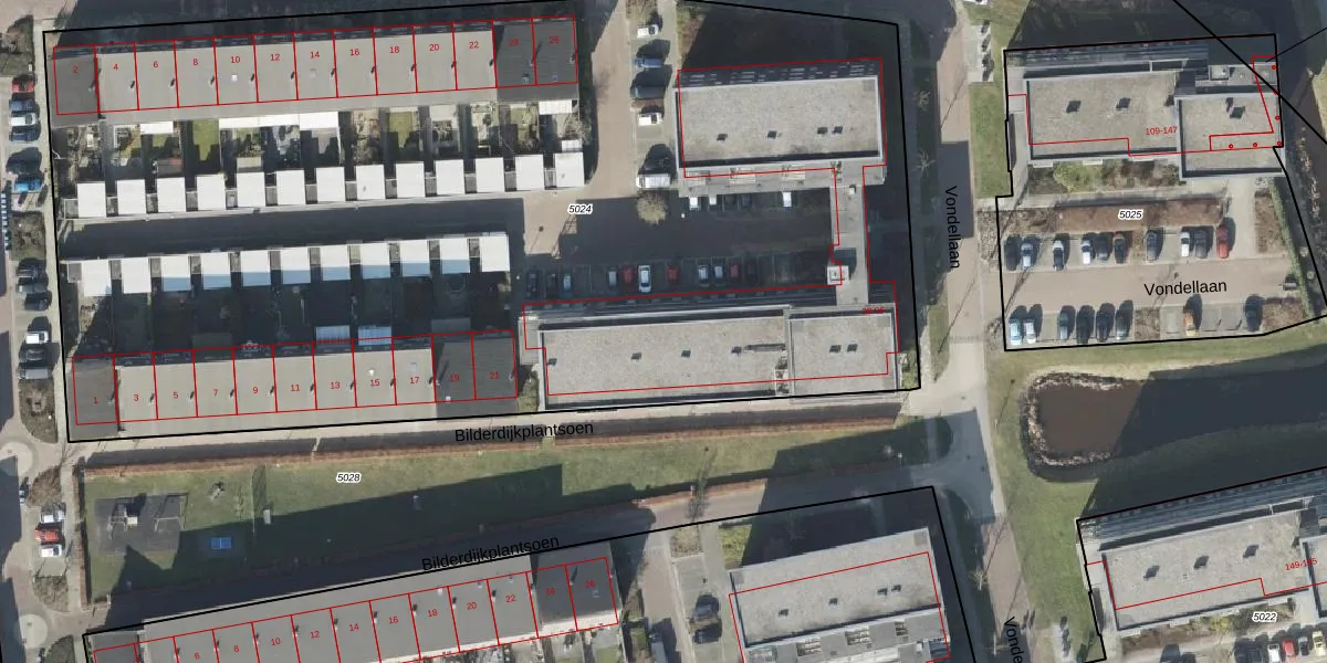 Het perceel waarop Vondellaan 74 staat heeft een oppervlakte van 7840 m². Dit is een zeer groot perceel. De perceeloppervlakte wordt geregistreerd door het Kadaster. Gedetailleerde informatie over de maten van dit perceel kunt u vinden in het rapport Kadastrale kaart met maatvoering van Vondellaan 74.