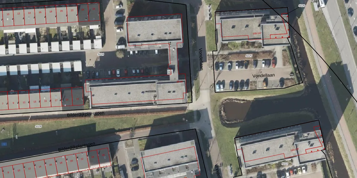Het perceel waarop Vondellaan 80 staat heeft een oppervlakte van 7840 m². Dit is een zeer groot perceel. De perceeloppervlakte wordt geregistreerd door het Kadaster. Gedetailleerde informatie over de maten van dit perceel kunt u vinden in het rapport Kadastrale kaart met maatvoering van Vondellaan 80.