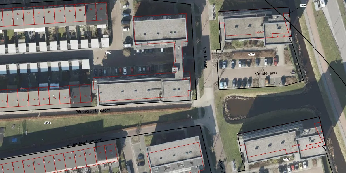 Het perceel waarop Vondellaan 82 staat heeft een oppervlakte van 7840 m². Dit is een zeer groot perceel. De perceeloppervlakte wordt geregistreerd door het Kadaster. Gedetailleerde informatie over de maten van dit perceel kunt u vinden in het rapport Kadastrale kaart met maatvoering van Vondellaan 82.