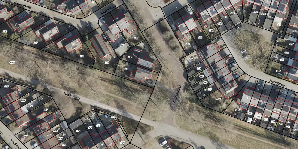 Het perceel waarop Voorstebree 1 staat heeft een oppervlakte van 319 m². Dit is een groot perceel. De perceeloppervlakte wordt geregistreerd door het Kadaster. Gedetailleerde informatie over de maten van dit perceel kunt u vinden in het rapport Kadastrale kaart met maatvoering van Voorstebree 1.
