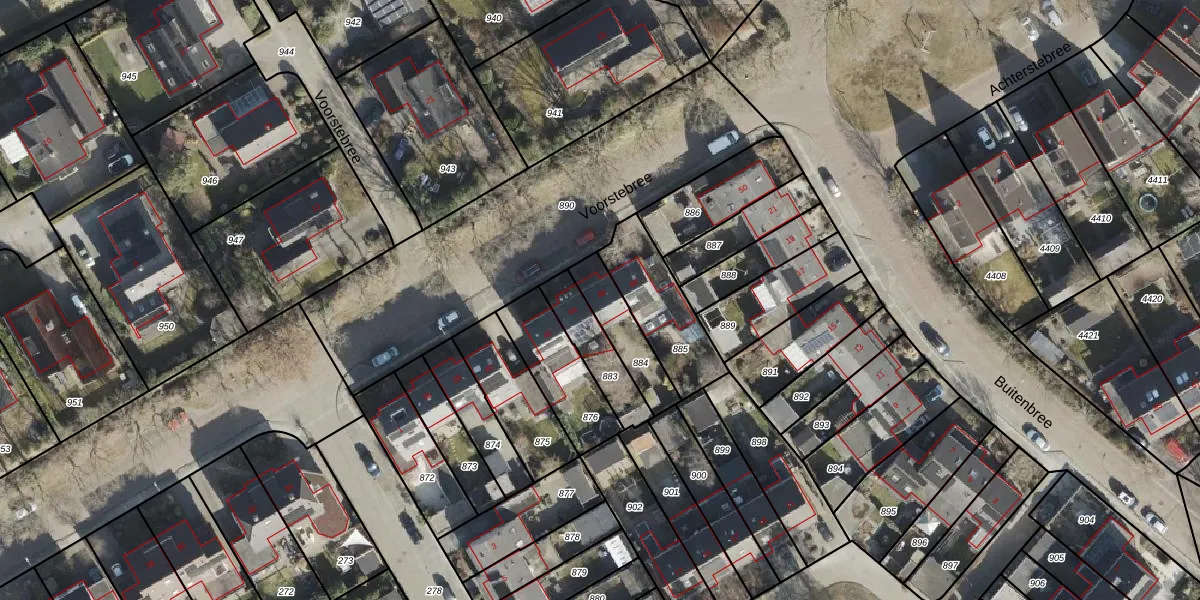 Gebruik de zoekbalk of klik op een perceel voor informatie over de adressen binnen dit perceel.