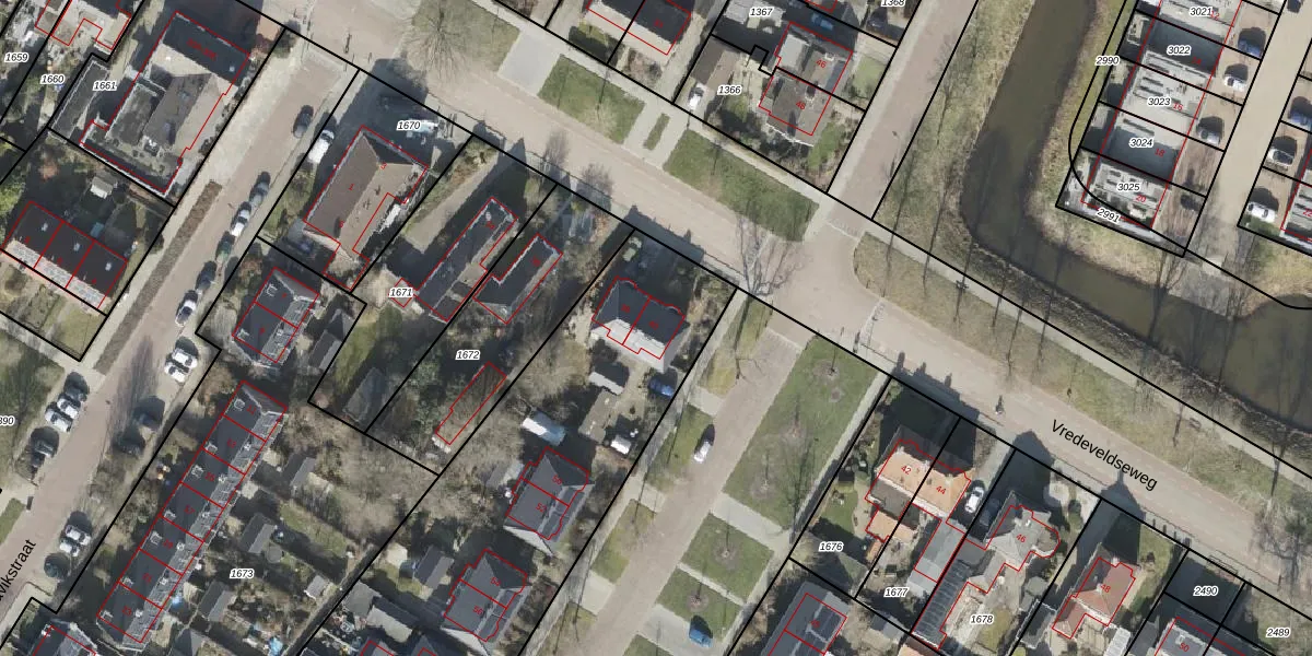 Vredeveldseweg 40 is gelegen op kadastraal perceel ASN00V1674. Deze kadastrale aanduiding is uniek en wordt gebruikt door het Kadaster om eigendomsrechten en andere zakelijke rechten vast te leggen. Het perceel maakt onderdeel uit van de kadastrale gemeente Assen.