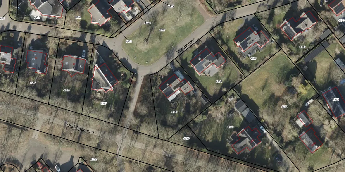Het perceel waarop Vreebergen 13 staat heeft een oppervlakte van 975 m². Dit is een groot perceel. De perceeloppervlakte wordt geregistreerd door het Kadaster. Gedetailleerde informatie over de maten van dit perceel kunt u vinden in het rapport Kadastrale kaart met maatvoering van Vreebergen 13.