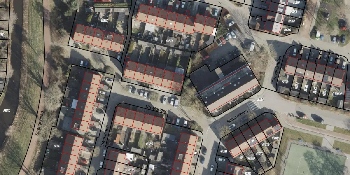 Het perceel waarop Vreelanden 2 staat heeft een oppervlakte van 2219 m². Dit is een zeer groot perceel. De perceeloppervlakte wordt geregistreerd door het Kadaster. Gedetailleerde informatie over de maten van dit perceel kunt u vinden in het rapport Kadastrale kaart met maatvoering van Vreelanden 2.