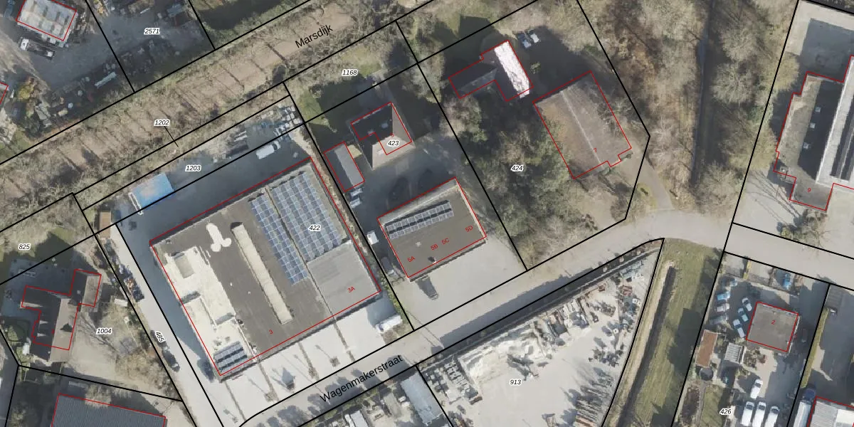 Het perceel waarop Wagenmakerstraat 5-D staat heeft een oppervlakte van 1650 m². Dit is een zeer groot perceel. De perceeloppervlakte wordt geregistreerd door het Kadaster. Gedetailleerde informatie over de maten van dit perceel kunt u vinden in het rapport Kadastrale kaart met maatvoering van Wagenmakerstraat 5-D.