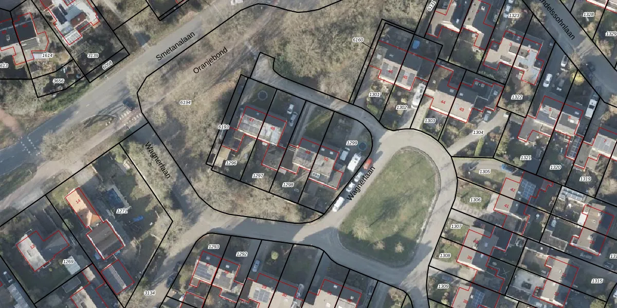 Het perceel waarop Wagnerlaan 49 staat heeft een oppervlakte van 321 m². Dit is een groot perceel. De perceeloppervlakte wordt geregistreerd door het Kadaster. Gedetailleerde informatie over de maten van dit perceel kunt u vinden in het rapport Kadastrale kaart met maatvoering van Wagnerlaan 49.