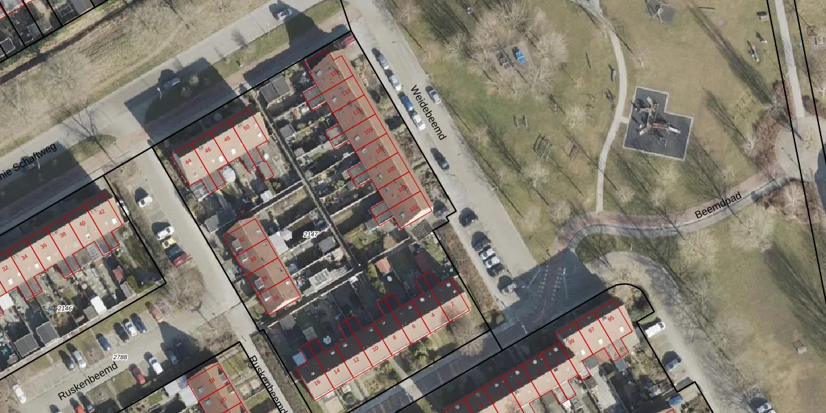 Het perceel waarop Weidebeemd 101 staat heeft een oppervlakte van 4202 m². Dit is een zeer groot perceel. De perceeloppervlakte wordt geregistreerd door het Kadaster. Gedetailleerde informatie over de maten van dit perceel kunt u vinden in het rapport Kadastrale kaart met maatvoering van Weidebeemd 101.