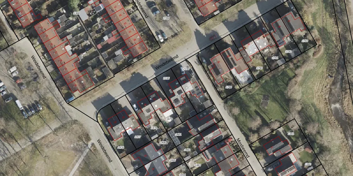 Het perceel waarop Weidebeemd 32 staat heeft een oppervlakte van 300 m². Dit is een groot perceel. De perceeloppervlakte wordt geregistreerd door het Kadaster. Gedetailleerde informatie over de maten van dit perceel kunt u vinden in het rapport Kadastrale kaart met maatvoering van Weidebeemd 32.
