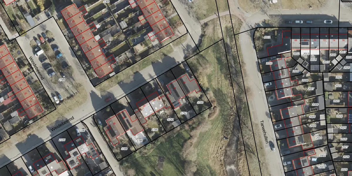 Het perceel waarop Weidebeemd 44 staat heeft een oppervlakte van 300 m². Dit is een groot perceel. De perceeloppervlakte wordt geregistreerd door het Kadaster. Gedetailleerde informatie over de maten van dit perceel kunt u vinden in het rapport Kadastrale kaart met maatvoering van Weidebeemd 44.
