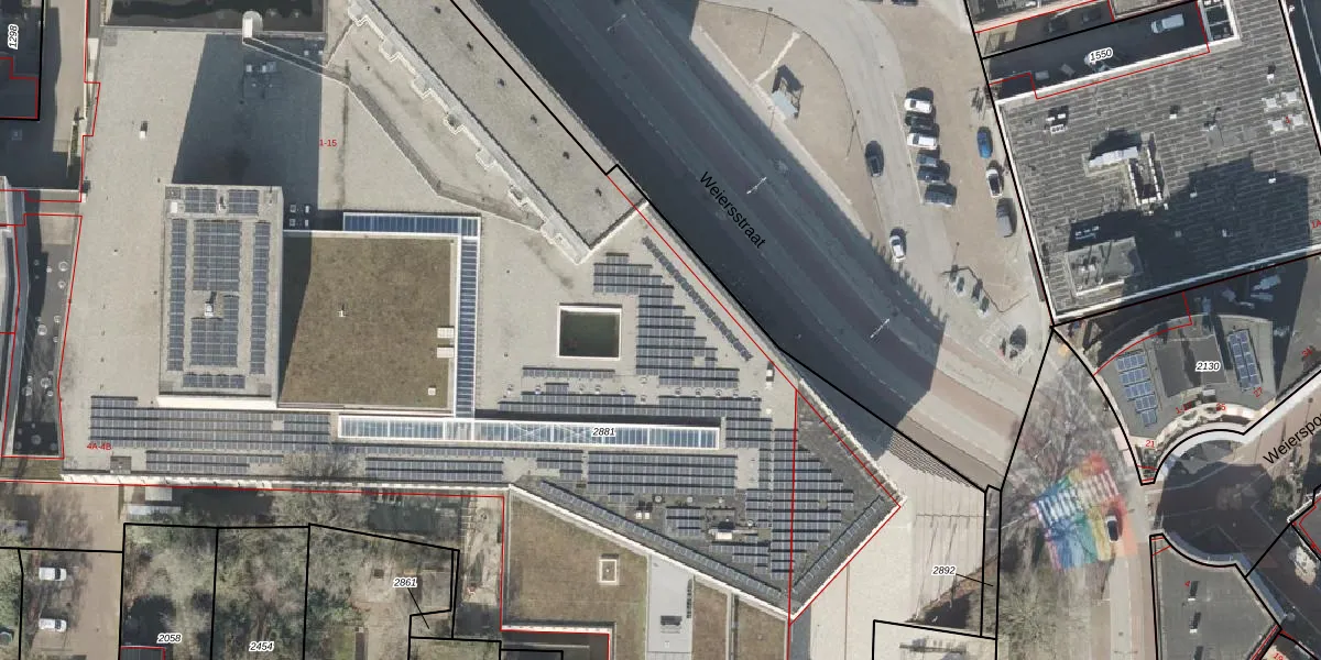 Weiersstraat 1-E is gelegen op kadastraal perceel ASN00S2881. Deze kadastrale aanduiding is uniek en wordt gebruikt door het Kadaster om eigendomsrechten en andere zakelijke rechten vast te leggen. Het perceel maakt onderdeel uit van de kadastrale gemeente Assen.