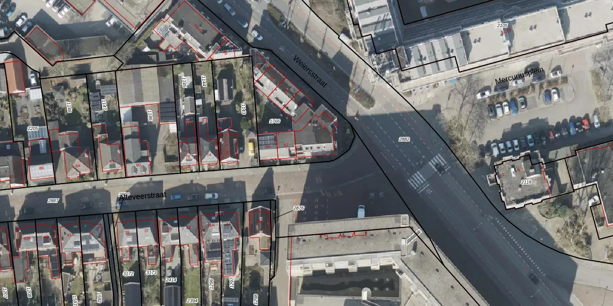 Het perceel waarop Weiersstraat 41 staat heeft een oppervlakte van 1484 m². Dit is een zeer groot perceel. De perceeloppervlakte wordt geregistreerd door het Kadaster. Gedetailleerde informatie over de maten van dit perceel kunt u vinden in het rapport Kadastrale kaart met maatvoering van Weiersstraat 41.