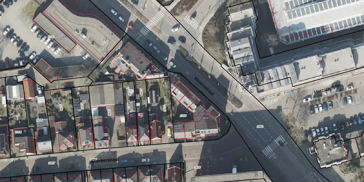 Het perceel waarop Weiersstraat 65 staat heeft een oppervlakte van 1484 m². Dit is een zeer groot perceel. De perceeloppervlakte wordt geregistreerd door het Kadaster. Gedetailleerde informatie over de maten van dit perceel kunt u vinden in het rapport Kadastrale kaart met maatvoering van Weiersstraat 65.