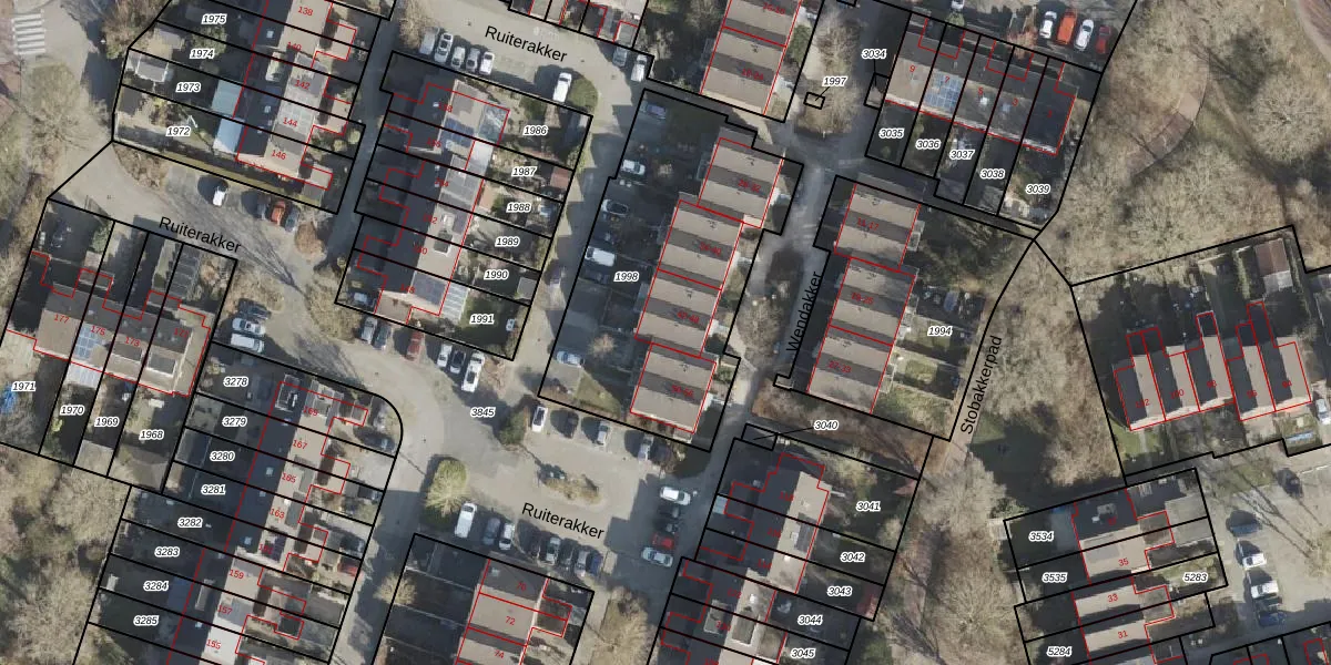 Het perceel waarop Wendakker 44 staat heeft een oppervlakte van 1230 m². Dit is een zeer groot perceel. De perceeloppervlakte wordt geregistreerd door het Kadaster. Gedetailleerde informatie over de maten van dit perceel kunt u vinden in het rapport Kadastrale kaart met maatvoering van Wendakker 44.