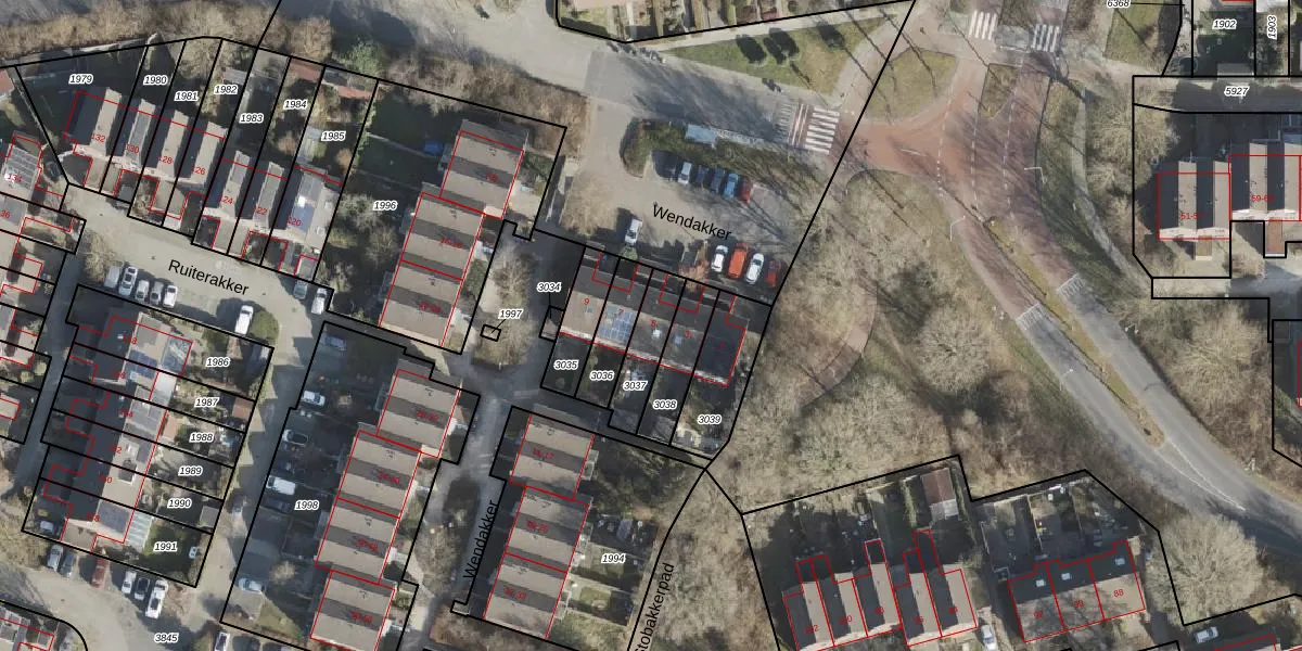 Gebruik de zoekbalk of klik op een perceel voor informatie over de adressen binnen dit perceel.