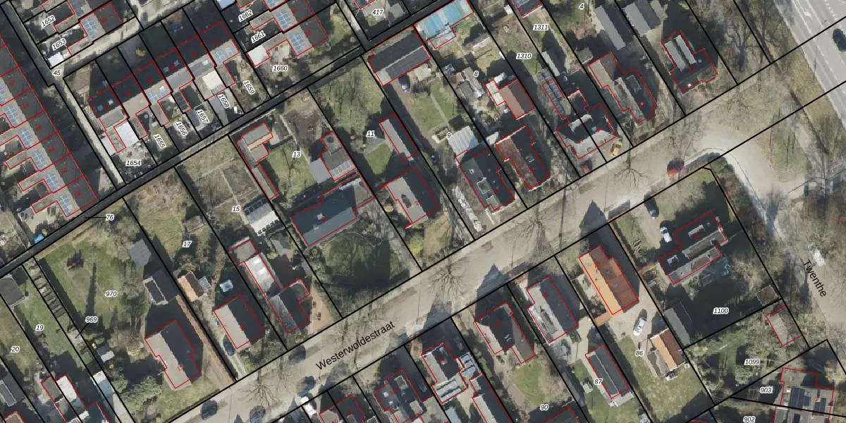 Gebruik de zoekbalk of klik op een perceel voor informatie over de adressen binnen dit perceel.