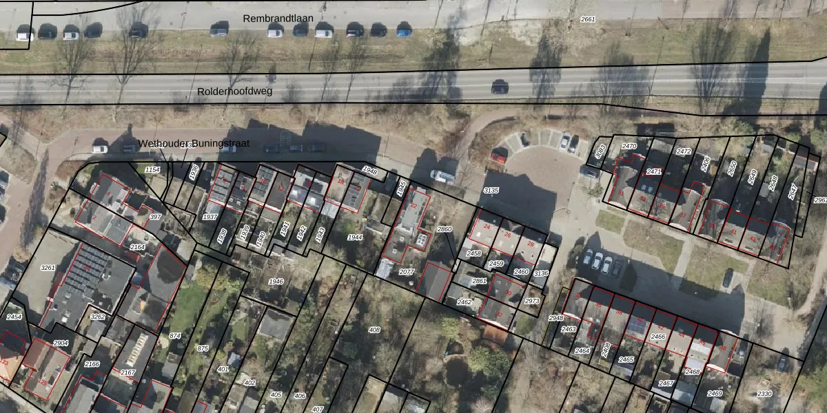 Gebruik de zoekbalk of klik op een perceel voor informatie over de adressen binnen dit perceel.