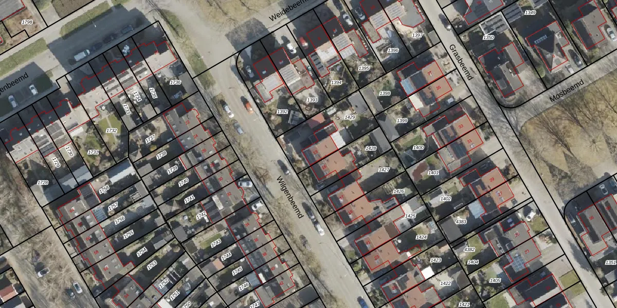 Het perceel waarop Wilgenbeemd 13 staat heeft een oppervlakte van 420 m². Dit is een groot perceel. De perceeloppervlakte wordt geregistreerd door het Kadaster. Gedetailleerde informatie over de maten van dit perceel kunt u vinden in het rapport Kadastrale kaart met maatvoering van Wilgenbeemd 13.
