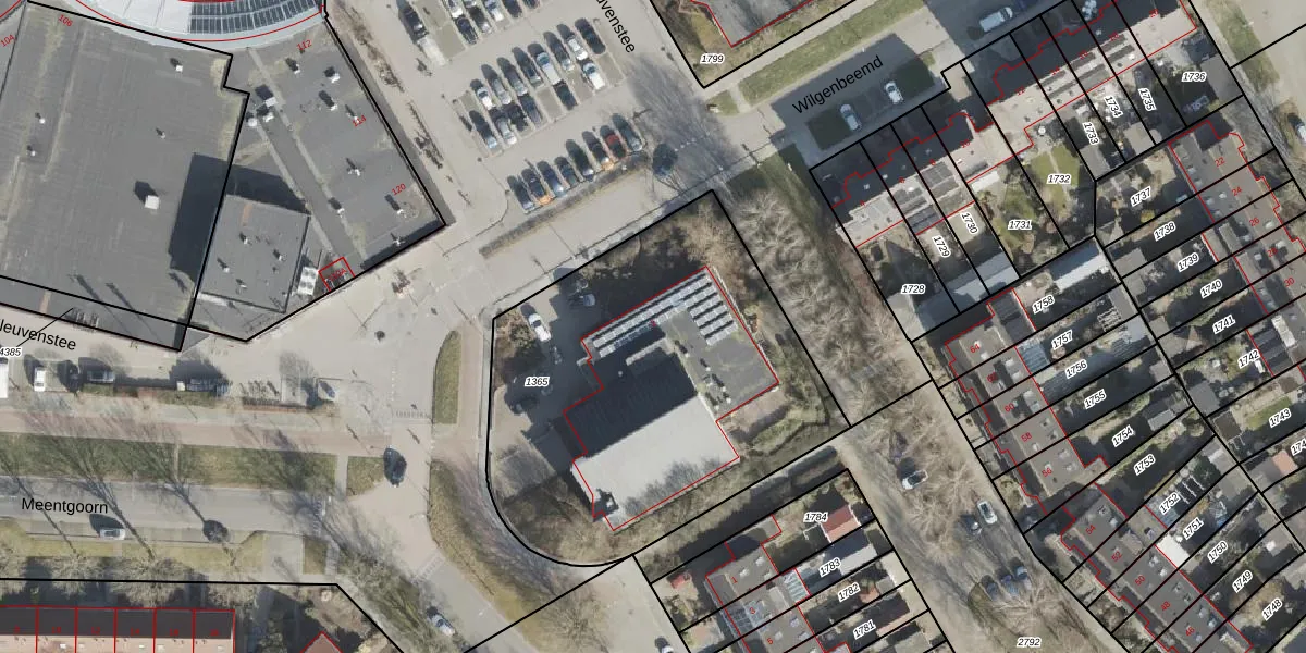 Gebruik de zoekbalk of klik op een perceel voor informatie over de adressen binnen dit perceel.