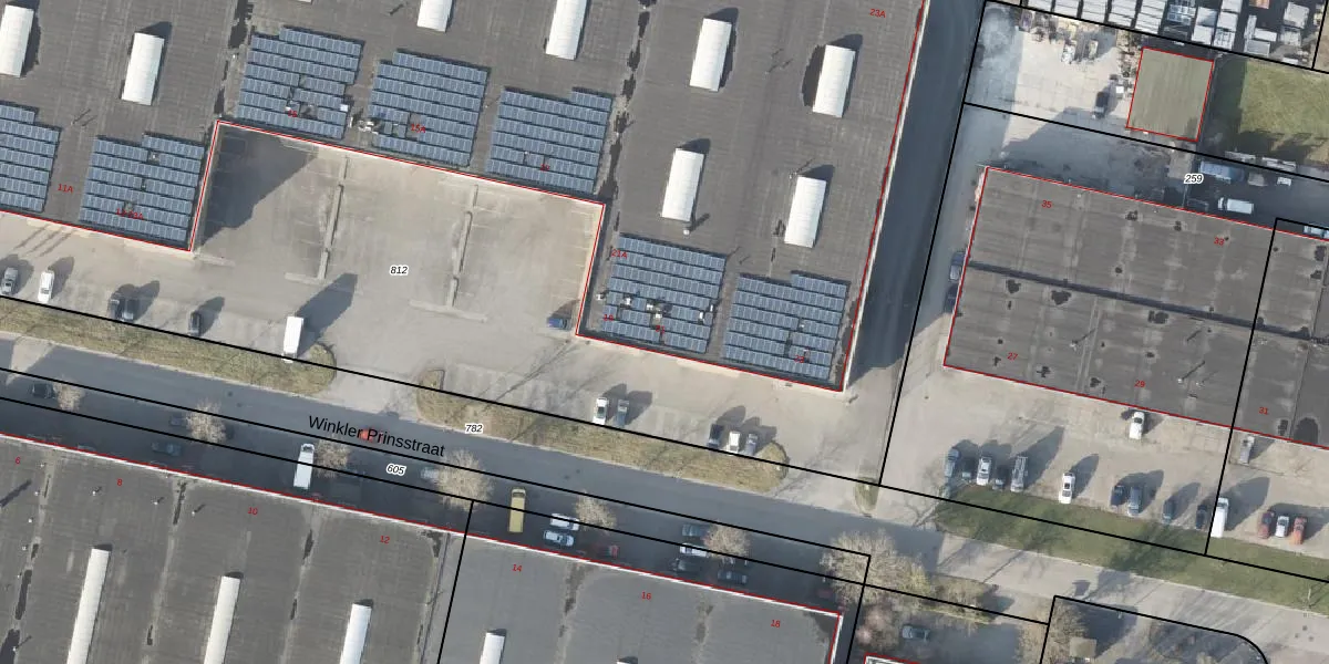 Het perceel waarop Winkler Prinsstraat 21 staat heeft een oppervlakte van 1,3 ha. Dit is een zeer groot perceel. De perceeloppervlakte wordt geregistreerd door het Kadaster. Gedetailleerde informatie over de maten van dit perceel kunt u vinden in het rapport Kadastrale kaart met maatvoering van Winkler Prinsstraat 21.