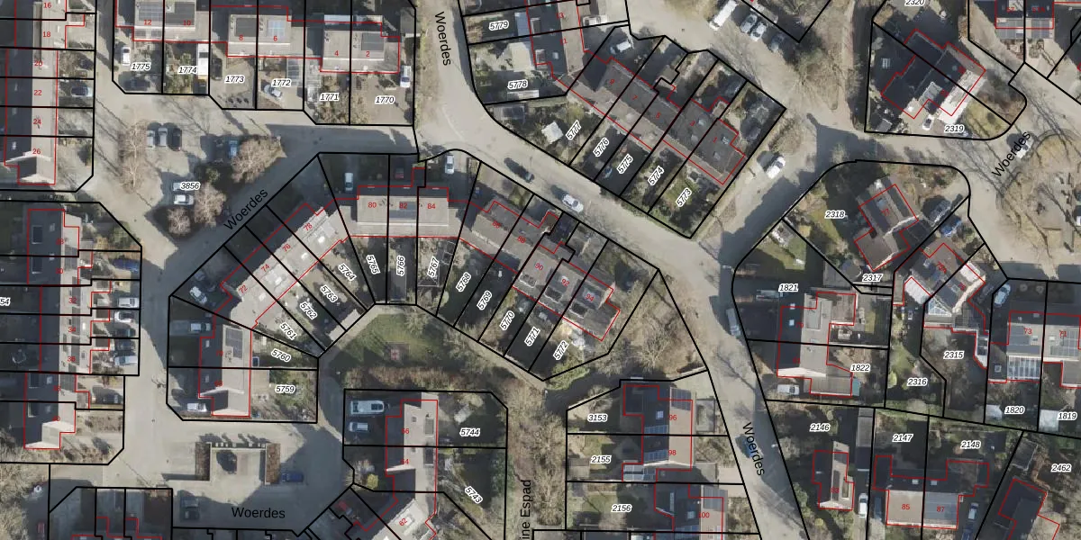 Woerdes 90 is gelegen op kadastraal perceel ASN00X5770. Deze kadastrale aanduiding is uniek en wordt gebruikt door het Kadaster om eigendomsrechten en andere zakelijke rechten vast te leggen. Het perceel maakt onderdeel uit van de kadastrale gemeente Assen.