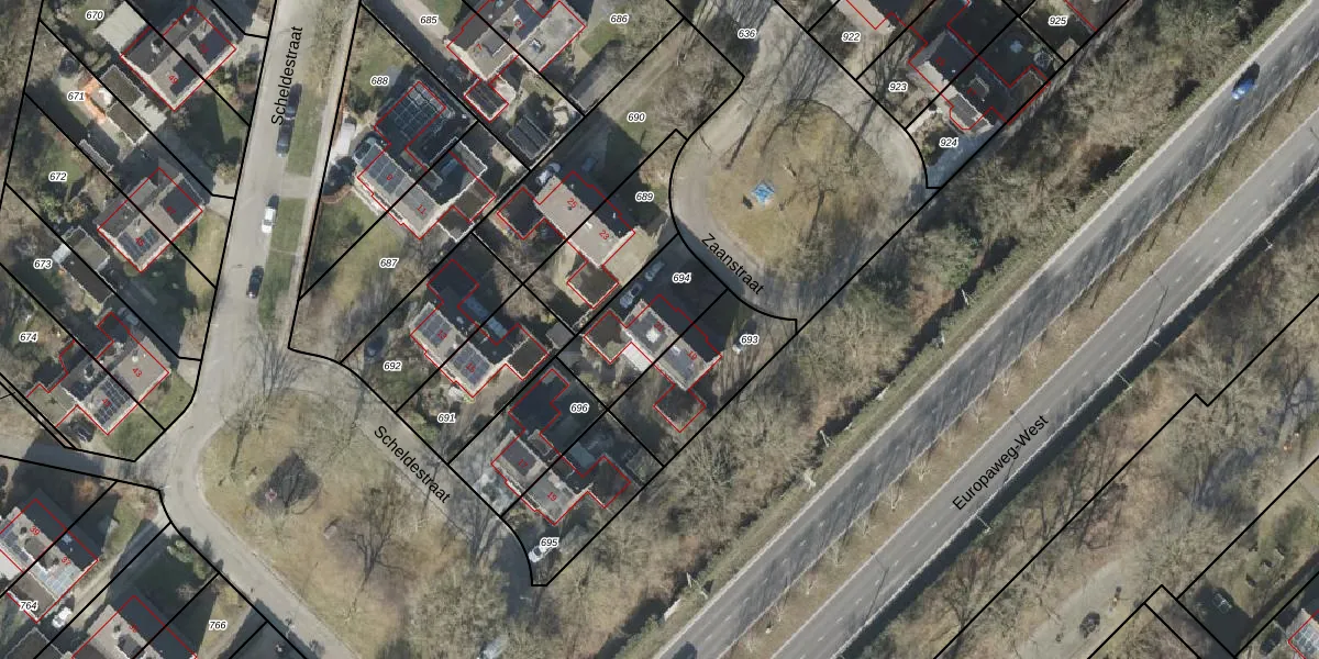 Het perceel waarop Zaanstraat 21 staat heeft een oppervlakte van 299 m². Dit is een middelgroot perceel. De perceeloppervlakte wordt geregistreerd door het Kadaster. Gedetailleerde informatie over de maten van dit perceel kunt u vinden in het rapport Kadastrale kaart met maatvoering van Zaanstraat 21.