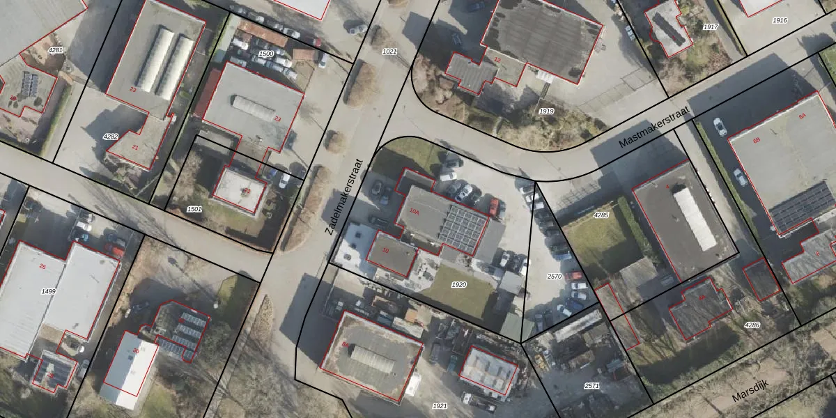 Het perceel waarop Zadelmakerstraat 10-A staat heeft een oppervlakte van 1575 m². Dit is een zeer groot perceel. De perceeloppervlakte wordt geregistreerd door het Kadaster. Gedetailleerde informatie over de maten van dit perceel kunt u vinden in het rapport Kadastrale kaart met maatvoering van Zadelmakerstraat 10-A.