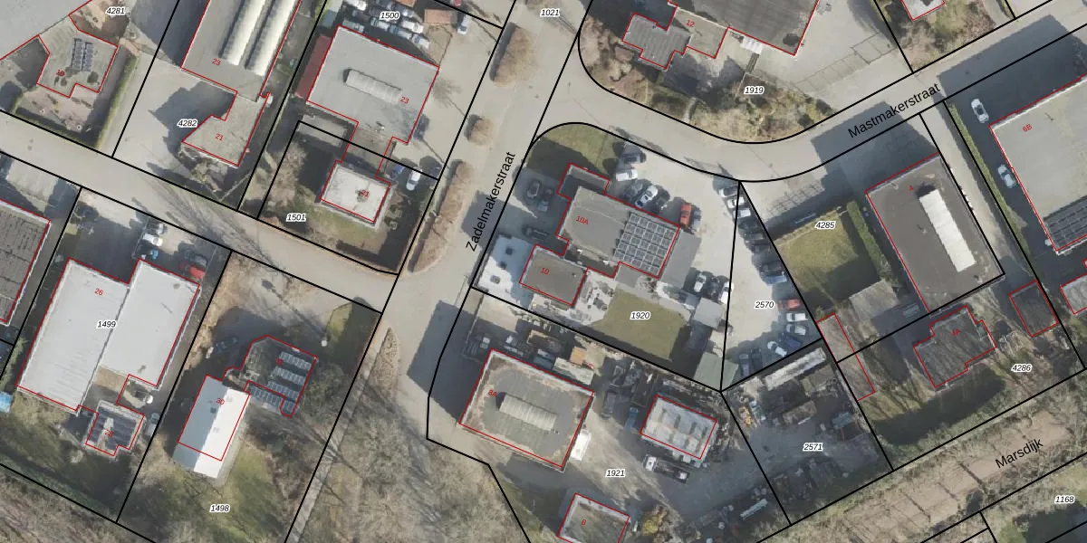 Het perceel waarop Zadelmakerstraat 10 staat heeft een oppervlakte van 1575 m². Dit is een zeer groot perceel. De perceeloppervlakte wordt geregistreerd door het Kadaster. Gedetailleerde informatie over de maten van dit perceel kunt u vinden in het rapport Kadastrale kaart met maatvoering van Zadelmakerstraat 10.
