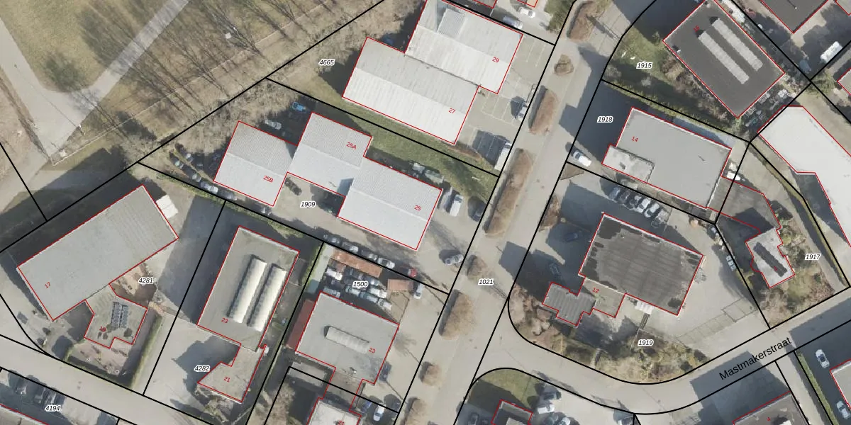 Het perceel waarop Zadelmakerstraat 25 staat heeft een oppervlakte van 2092 m². Dit is een zeer groot perceel. De perceeloppervlakte wordt geregistreerd door het Kadaster. Gedetailleerde informatie over de maten van dit perceel kunt u vinden in het rapport Kadastrale kaart met maatvoering van Zadelmakerstraat 25.