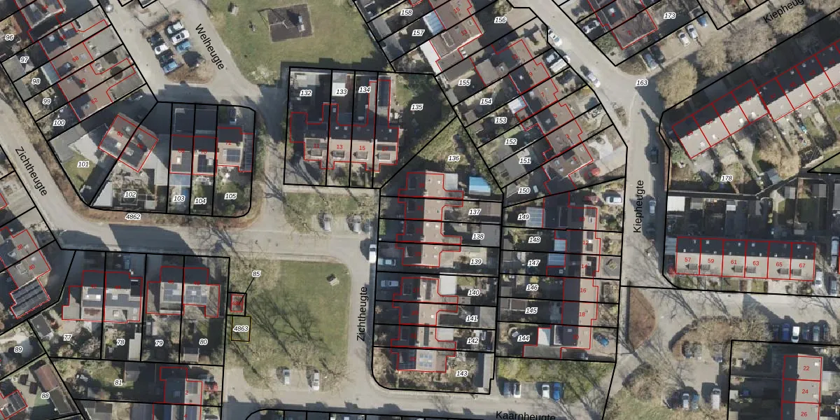 Gebruik de zoekbalk of klik op een perceel voor informatie over de adressen binnen dit perceel.