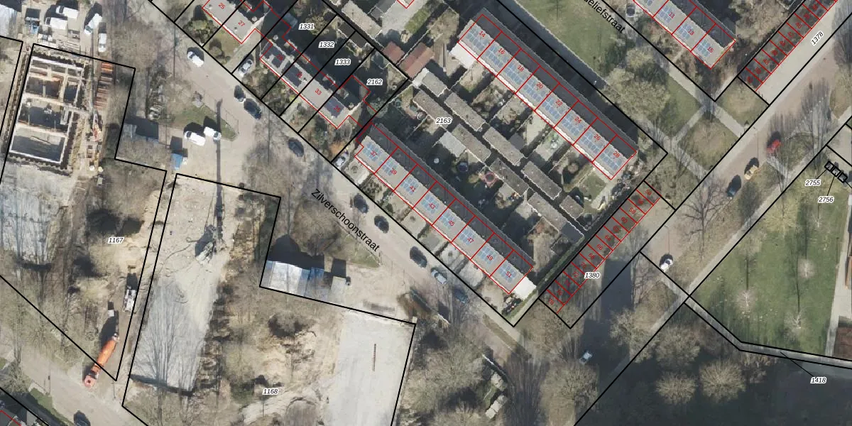 Het perceel waarop Zilverschoonstraat 43 staat heeft een oppervlakte van 4516 m². Dit is een zeer groot perceel. De perceeloppervlakte wordt geregistreerd door het Kadaster. Gedetailleerde informatie over de maten van dit perceel kunt u vinden in het rapport Kadastrale kaart met maatvoering van Zilverschoonstraat 43.