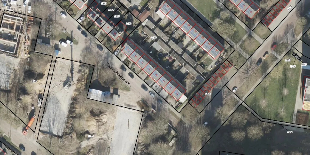 Het perceel waarop Zilverschoonstraat 45 staat heeft een oppervlakte van 4516 m². Dit is een zeer groot perceel. De perceeloppervlakte wordt geregistreerd door het Kadaster. Gedetailleerde informatie over de maten van dit perceel kunt u vinden in het rapport Kadastrale kaart met maatvoering van Zilverschoonstraat 45.