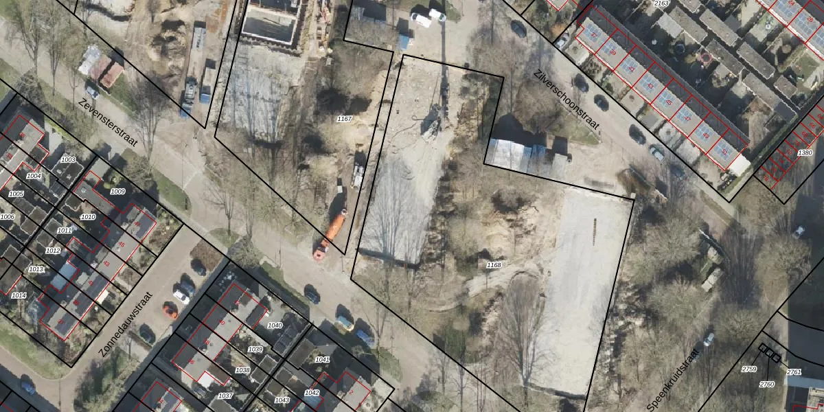 Het perceel waarop Zilverschoonstraat 8-K staat heeft een oppervlakte van 3586 m². Dit is een zeer groot perceel. De perceeloppervlakte wordt geregistreerd door het Kadaster. Gedetailleerde informatie over de maten van dit perceel kunt u vinden in het rapport Kadastrale kaart met maatvoering van Zilverschoonstraat 8-K.