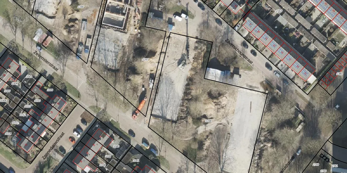 Het perceel waarop Zilverschoonstraat 8-Q staat heeft een oppervlakte van 3586 m². Dit is een zeer groot perceel. De perceeloppervlakte wordt geregistreerd door het Kadaster. Gedetailleerde informatie over de maten van dit perceel kunt u vinden in het rapport Kadastrale kaart met maatvoering van Zilverschoonstraat 8-Q.