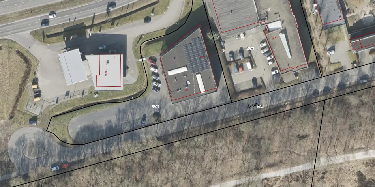 Het perceel waarop Zoom 20 staat heeft een oppervlakte van 2901 m². Dit is een zeer groot perceel. De perceeloppervlakte wordt geregistreerd door het Kadaster. Gedetailleerde informatie over de maten van dit perceel kunt u vinden in het rapport Kadastrale kaart met maatvoering van Zoom 20.