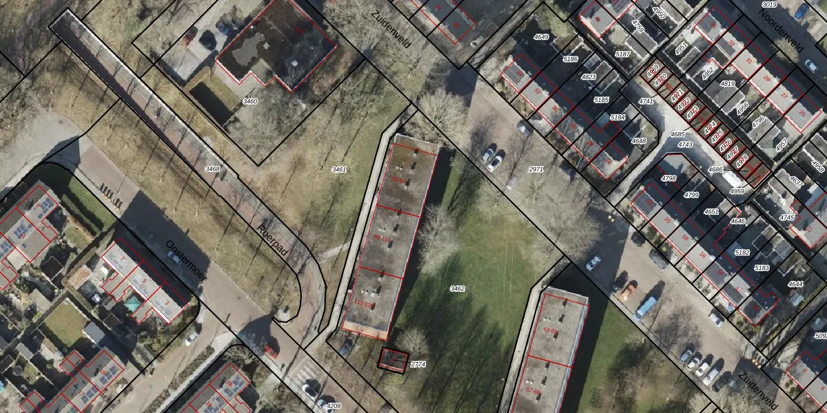 Het perceel waarop Zuidenveld 95 staat heeft een oppervlakte van 2694 m². Dit is een zeer groot perceel. De perceeloppervlakte wordt geregistreerd door het Kadaster. Gedetailleerde informatie over de maten van dit perceel kunt u vinden in het rapport Kadastrale kaart met maatvoering van Zuidenveld 95.
